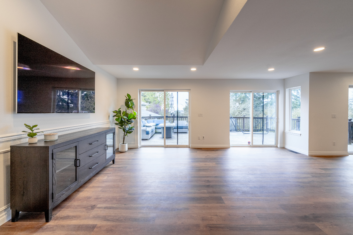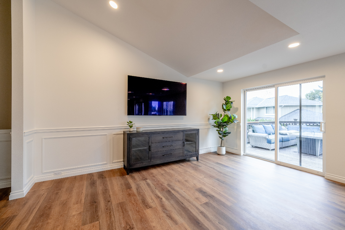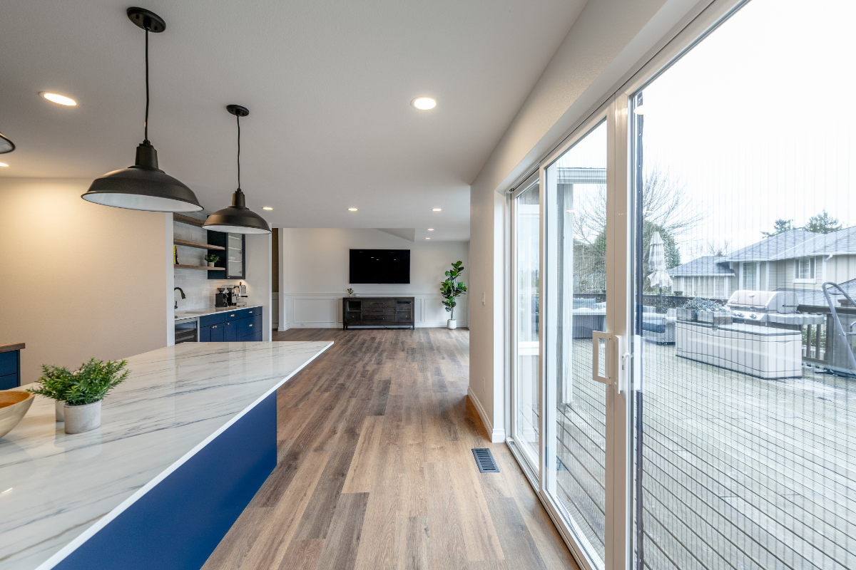 The primary goal was to improve the flow between rooms while strengthening connections to outdoor living areas. By opening up the living room, kitchen, family room, and dining room, the remodel created a cohesive floor plan that supports larger gatherings without sacrificing comfort or function. Exterior improvements further reinforced this flow, allowing entertaining to extend naturally beyond the interior walls.